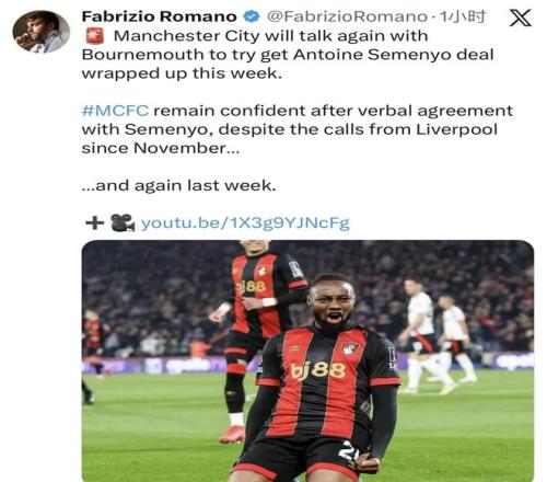 “曼城與塞梅尼奧已經達成協議,曼城對此交易充滿信心,盡管利物浦從11月就開始接觸球員,并且上周再次聯系。”