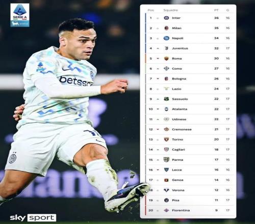 最終國際米蘭客場1-0戰勝亞特蘭大,重登意甲積分榜榜首。