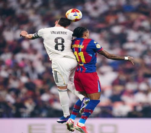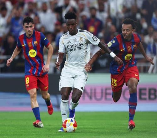 隨著主裁一聲哨響,兩支球隊就拉開架勢對攻,第34分鐘亞馬爾妙傳,可惜拉菲尼亞的單刀機會踢偏,不過2分鐘之后,他就彌補了遺憾,左路帶球殺入禁區后低射遠角建功,幫助巴薩取得了1-0的領先,第47分鐘維尼修斯還以顏色,左路單挑巴薩整條后防,打入一記天秀進球,終結長達3個月的進球荒,將比分追至1平。