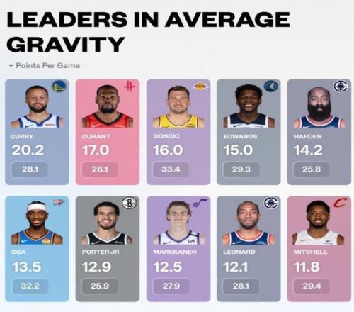 火箭隊的射手群失常,這是球隊目前一直在輸球的關鍵所在。所以說,火箭隊的射手群需要大換血。有一項關鍵的數據,也能證明火箭隊的射手群有多不靠譜。根據統計顯示,本賽季到目前為止,在“引力值”排行榜當中,勇士隊的超級射手庫里排名第一,而火箭隊的巨星杜蘭特排名第二,湖人隊的東契奇排名第三,第四位是森林狼核心愛德華茲,第五位是火箭舊將詹姆斯·哈登。所謂的引力值,就是一位球員吸引對方防守的能力。我們基本上可以看到,杜蘭特每次一拿球就能吸引對方的兩人甚至是三人包夾。