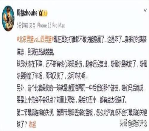 翟曉川末節已經拼老命拿了13分5籃板2蓋帽,但北京攻防缺口太多了,被去年季后賽遭到自己橫掃的山西完成復仇。