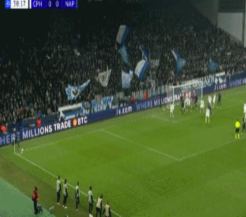 第39分鐘,麥克托米奈禁區頭球破門,那不勒斯2-0哥本哈根
