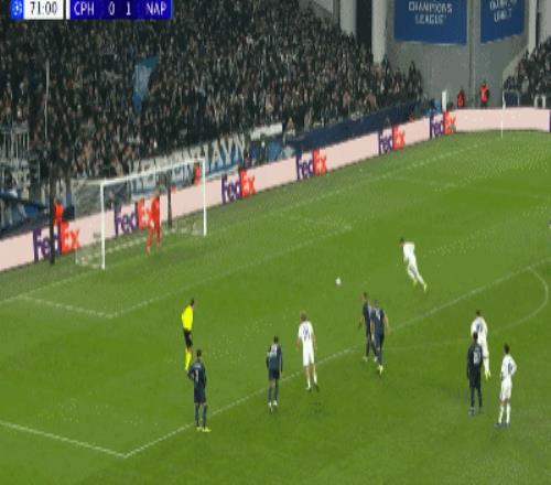 第71分鐘,拉爾森點球被撲,隨后補射破門,哥本哈根1-1那不勒斯
