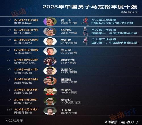 27歲的何杰、33歲的楊紹輝、24歲的豐配友,連續(xù)三年占據(jù)年度最好成績TOP 3。他們毫無疑問是當下中國男子馬拉松的最強戰(zhàn)力。